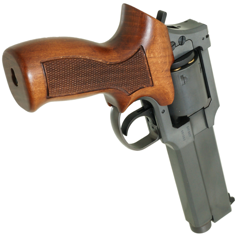 本来は競技用にデザインされたモデルで 力学的には射撃の安定性こそ理に適った設計ですが サイティングや操作等の実用面ではやはりキワモノ・ゲテモノと分類されても仕方の無いところ