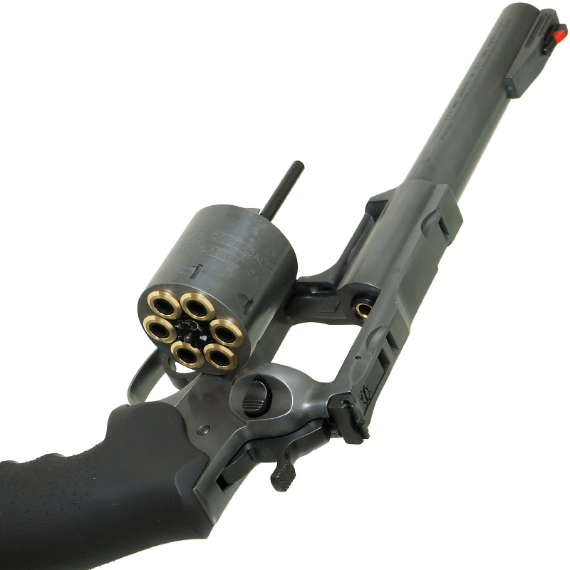 実銃のイメージを大切にしたライブカートリッジ式で、リボルバーらしい操作を楽しめます