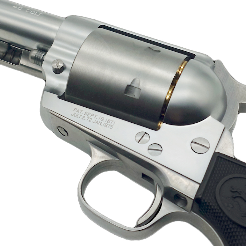 現代のハイプレッシャーカートリッジにも対応するカスタムモデルの様なシングルアクションリボルバー
